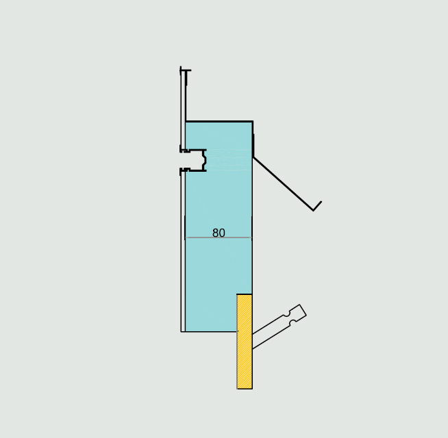 Composizione spalla: Coibentazione in polistirene estruso da 80 mm termoisolante λD =0,033 W/(m·K) Finitura in fibrocemento spessore 5 mm densità 1600 kg/m³ Profilo paraspigolo in alluminio. Guida in alluminio con spazzolini. Contro-telaio a taglio termico su misura legno / lamiera. Spalla 85: trasmittanza termica lineare calcolata su muratura isolata da 400 mm con cappotto da 100 mm Ψ=0,025 W/(m·K)